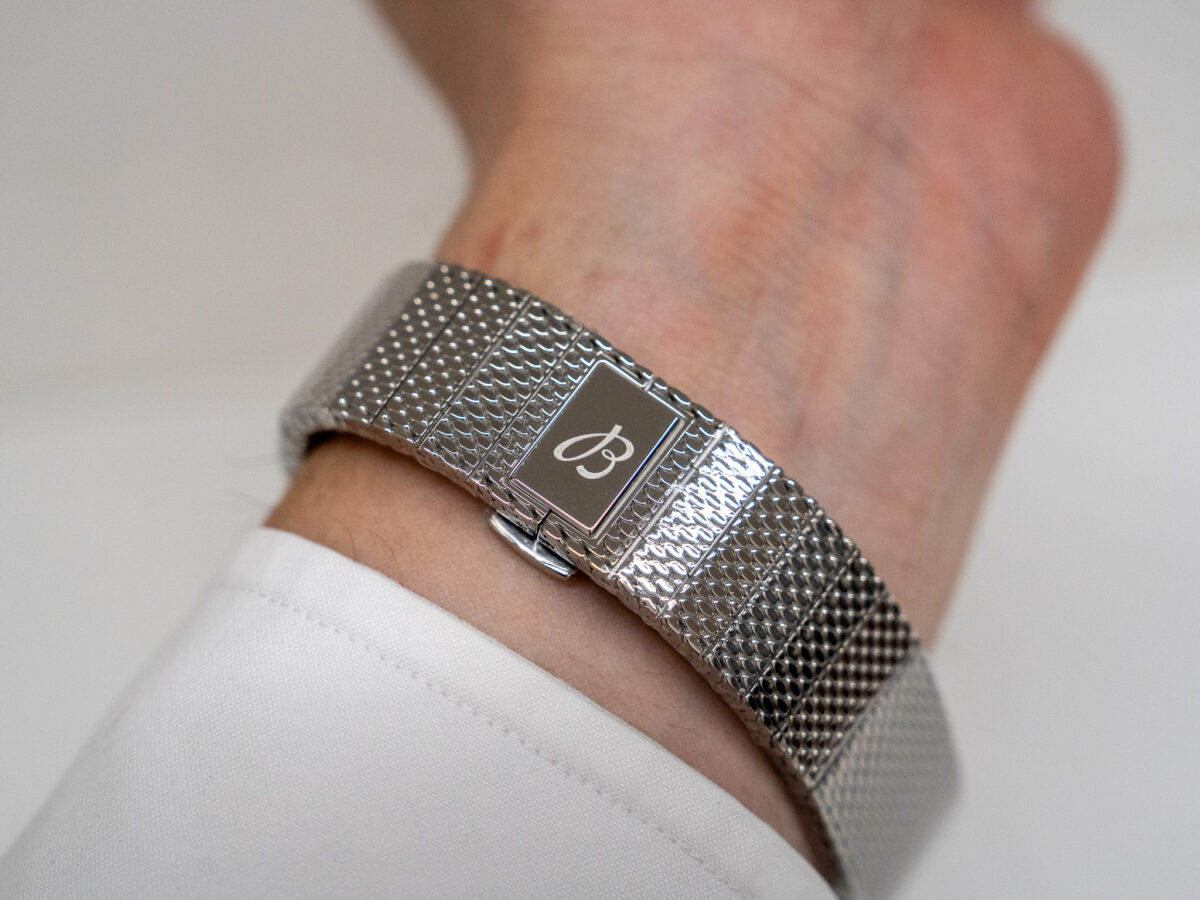 ブライトリングブティック京都では、専用の超音波洗浄機を使用してブレスレットのクリーニングを行っております。
