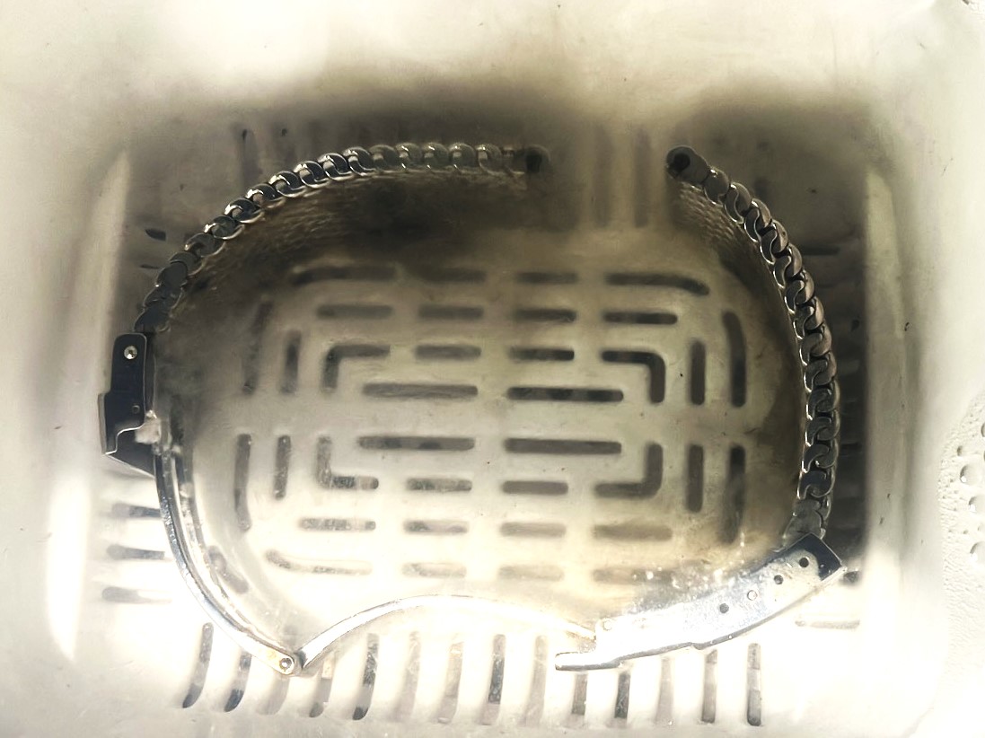 ブレスレットを洗浄機に入れ、スイッチをオンにすると——
