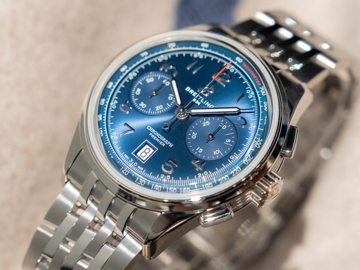 さて、本日は国内外問わず人気なブルー文字盤のお時計をご紹介いたします。美しいダークブルー文字盤はいくつかございますが、その中でも特に人気なのが「プレミエB01 42」です。いい意味でブライトリングらしさを感じさせないクラシカルさと3針+カレンダー機能搭載という「揃っている」お時計です。
